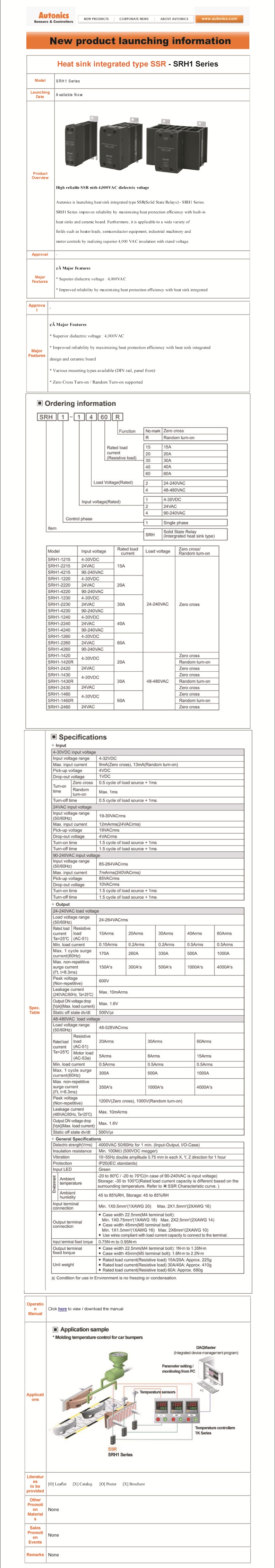 Line-up for Heat Sink integrated type SSR - SRH1 Series